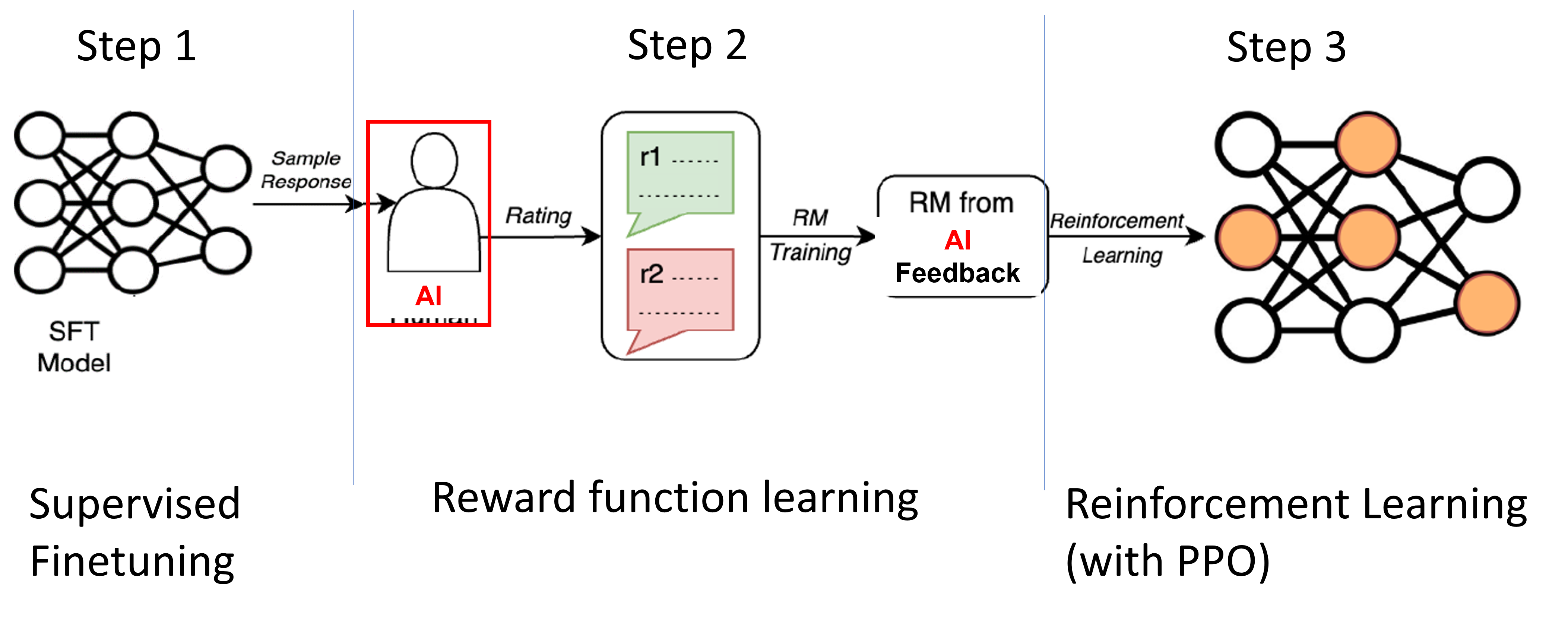 The success of ChatGPT brought a lot of attention to the method called RLHF (Reinforcement Learning with Human Feedback). This method gave a significant boost to the original GPT-3 model and led to the successful deployment of GPT-3.5, which powered ChatGPT. RLHF is also used to enhance the performance of GPT-4, Google’s PaLM 2, and Meta’s Llama 2 model. Thus, it is the most widely used fine-tuning method for LLMs today.