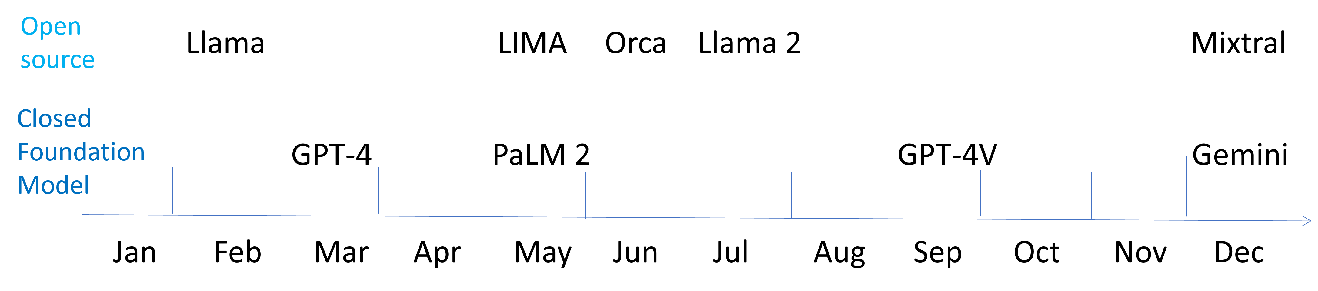Meta released Llama in February, and LIMA was released in May. However, most of them did not deliver satisfactory performance compared to the state of the art OpenAI model (GPT 3.5 at that time).