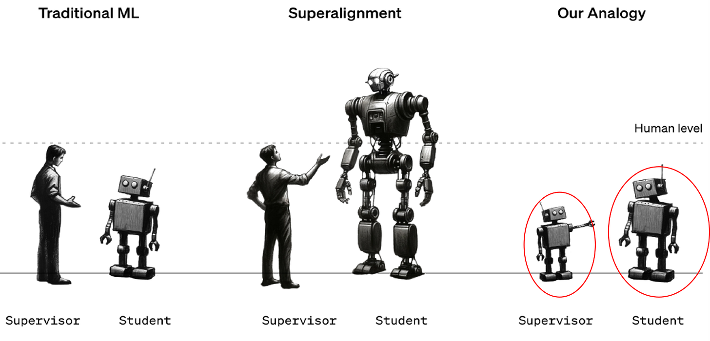 Burns, Collin, Pavel Izmailov, Jan Hendrik Kirchner, Bowen Baker, Leo Gao, Leopold Aschenbrenner, Yining Chen et al. "Weak-to-Strong Generalization: Eliciting Strong Capabilities With Weak Supervision." arXiv preprint arXiv:2312.09390 (Dec 14, 2023).