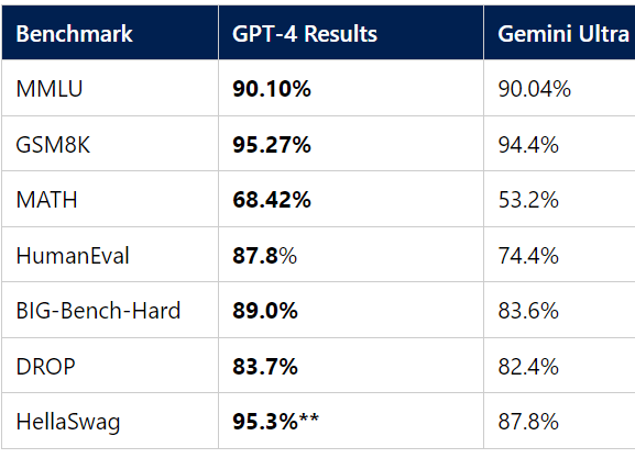 When it was released, Gemini was shown to surpass GPT-4 in every dataset except a commonsense reasoning task (HellaSwag). However, this achievement was quickly surpassed just one week later, according to a new study from Microsoft . Researchers discovered that GPT-4 outperforms Gemini Ultra in all datasets when using a novel prompting method called Promptbase.